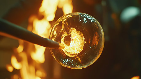 Witness the captivating art of glassblowing as an artisan shapes molten glass into an intricate deli design. The glowing material transforms with skill and passion in a vibrant workshop environment.