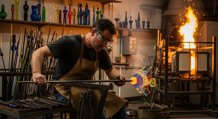 Glass Craftsman Creating Colored Glass Art in Studio