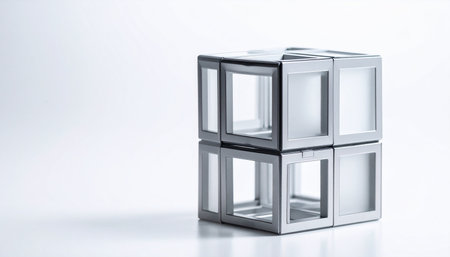 A pristine assembly of four interconnected cubes stands as a symbol of clarity, structure, and foundational strength.