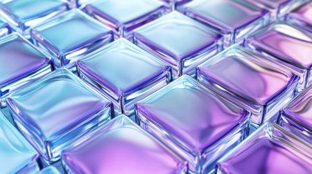 This abstract image showcases colorful glowing cubes arranged in a seamless pattern. The reflective surfaces create a dynamic and vibrant look, perfect for modern design projects.