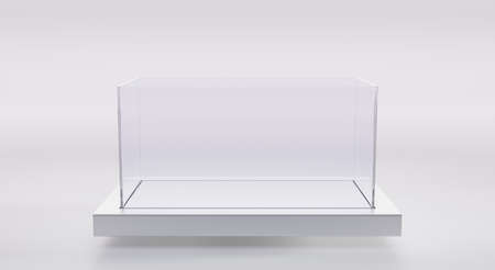 Glass showcase on a white background. 3d rendering, mock up