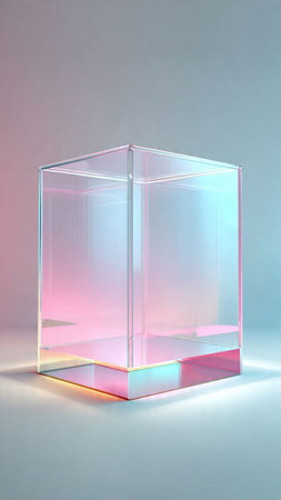 Iridescent Glass Cube Abstract Modern Design Digital Art Background 3d dark shape shiny light style