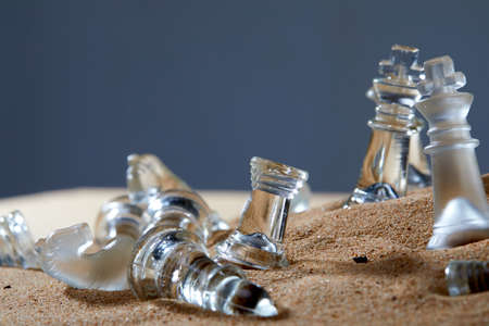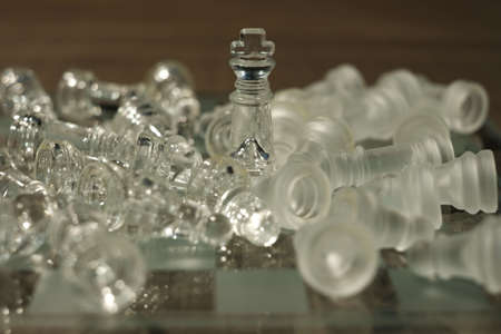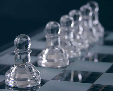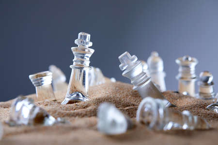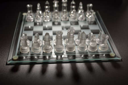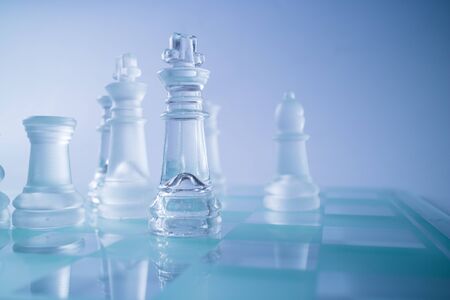 Transparent glass chess pieces on dark background. Leadership ,confrontation and strategy concept