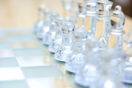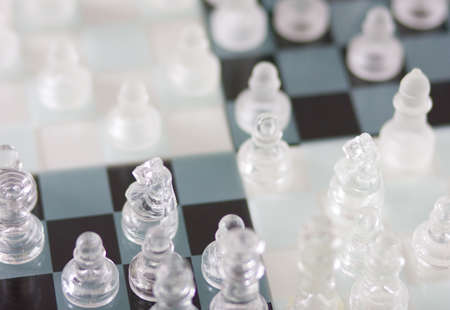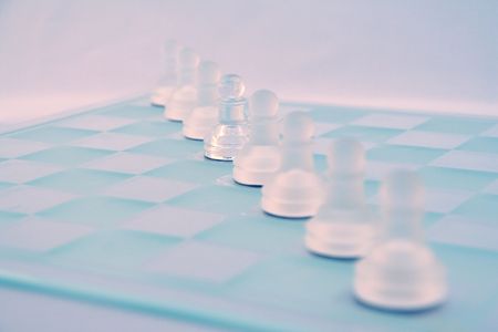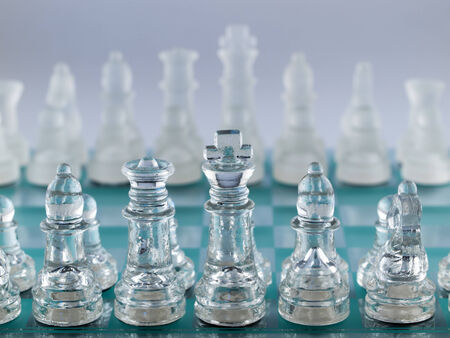 Glass Chess Pieces on a Frosted Glass Chessboard