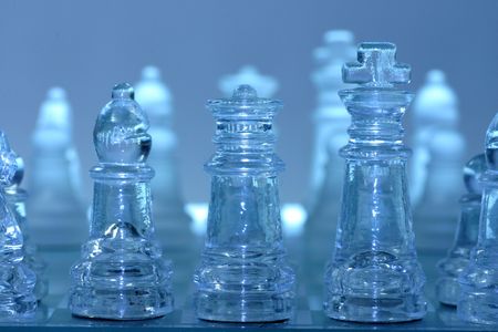 Glass King Queen in the foreground with selective focus - opposing King in the background