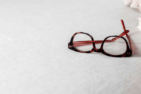 Classic style glasses on white texture background, eyewear fashion, reading glasses