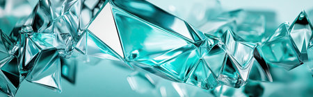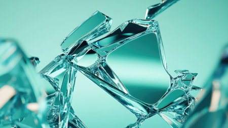 This image features a captivating arrangement of broken glass pieces reflecting light against a soft mint background, creating a stunning visual effect.