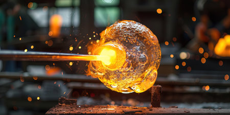 Crafting molten glass into a work of art with fiery sparks and skilled hands