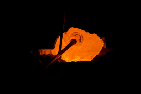 Close view of hot glass object in blast furnace