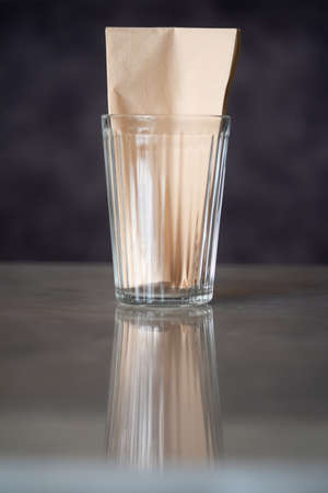 Napkin brown tissue paper in glass cup. Recycled paper good for environment
