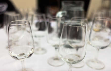 Wine glasses for strong alcoholic beverages, background of wine glasses