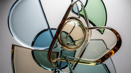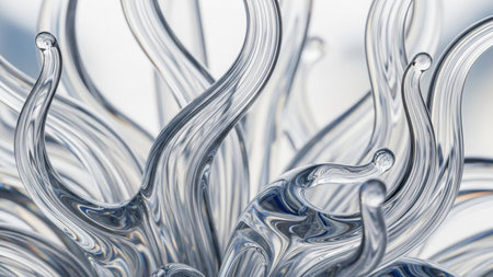 Bright showing intertwined transparent glass tubes forming an abstract infinity loop with light refractions and...