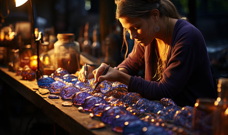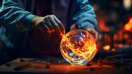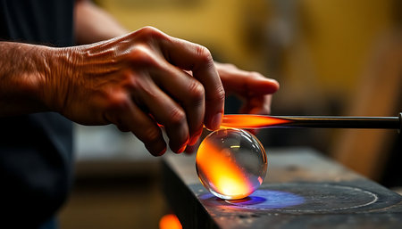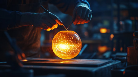 The intricate and fascinating movements of a skilled glassblower manipulating molten glass into beautiful shapes and patterns created with Generative AI