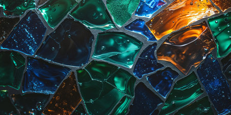 Beautiful arrangement of shattered glass fragments, showcasing vibrant colors and reflections. Ideal for abstract art themes or creative projects.