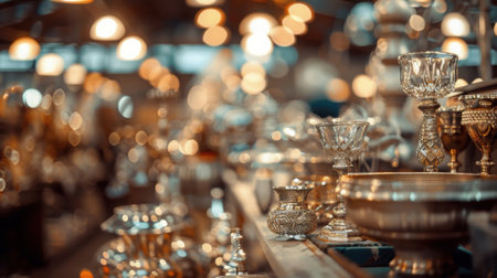 A defocused view of elegant tables with art pieces carefully displayed