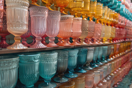 A collection of a variety of colorful glassware on display, AI
