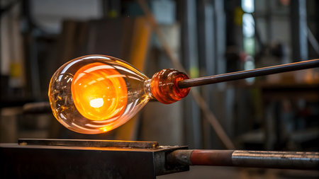 A glassblower crafting a beautiful glass vase in a hot shop, demonstrating artisan expertise