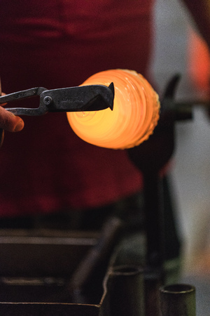 Detail of a glass craftsman, shaping glass with fire