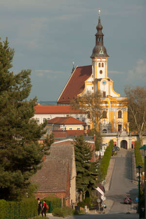 Church of St. James the Greater in Jihlava is a three-aisled hall church with a long presbytery and two tall towers in winter with evening sunset