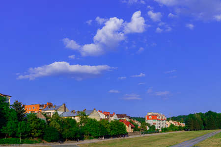 outskirts green ecological city district small cottages buildings in park outdoor natural outdoor environment space in clear weather day time