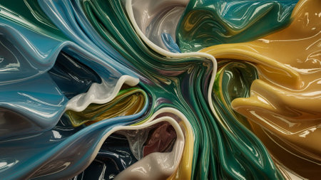 Explore the mesmerizing flow of colorful paint swirling in dynamic wave-like formations, creating intricate abstract patterns for artistic inspiration and creativity.