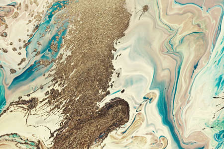 Fluid Art acrylic paints. Abstract mixing waves and grains of sand. Liquid flows splashes. Marble effect background or texture