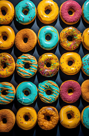 Delicious glazed donuts with colorful frosting create a sweet indulgence on a sunny day