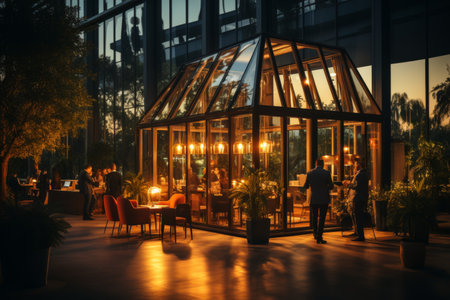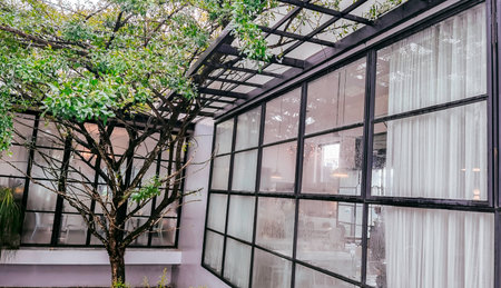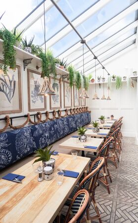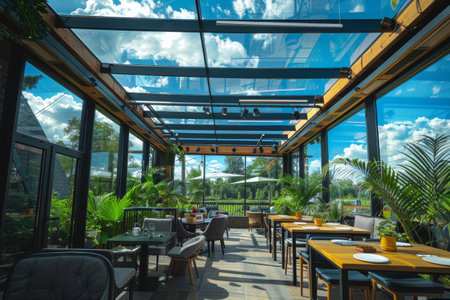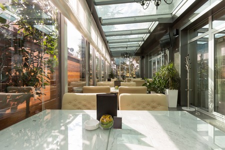 Glazed restaurant terrace interior