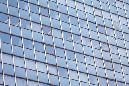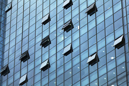 Glass windows of an office building in a modern city in the financial district