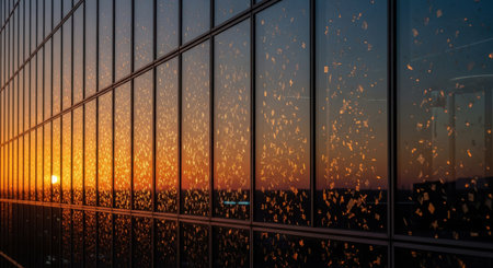 Reflection of the sunset in the windows of a modern office building