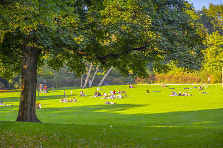 Luxembourg, May 2022. People relax in the Kinnekswiss park in the city center