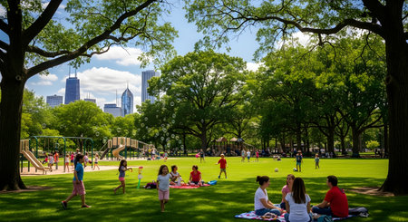 Vibrant green parks provide refreshing urban escapes for relaxation and leisure activities