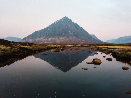 Beautiful winter landscape with reflection in Glencoe, Scotland, UK