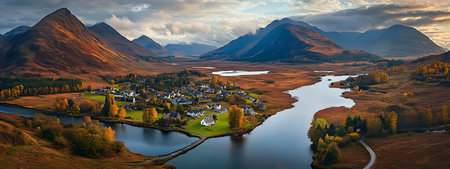 Panoramic view of Glencoe in Scotland, United Kingdom.