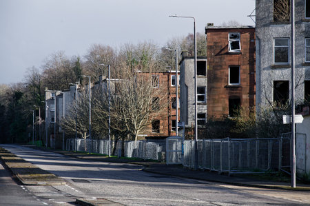 Derelict council flats in housing estate with many social welfare issues in Port Glasgow