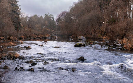 The Water of Deugh flowing through Dundeugh below the Polmaddy Burn confluence in Winter, Dumfries and Galloway, Scotland