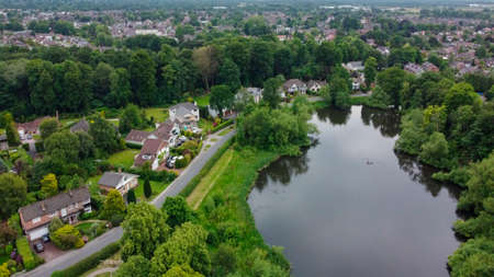 Aerial view of Poynton Pool in Poynton, south of Manchester in the northwest of England.
