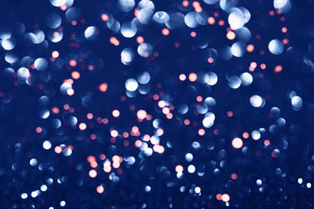 abstract dark blue Bokeh circles Christmas background, glitter light Defocused