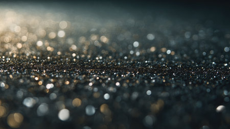 Glittering particles create a reflective surface against a dark background