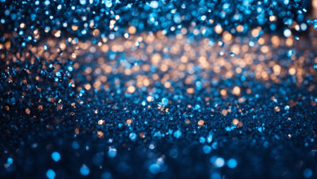 AI Generated. Close-up of blue glitter reflecting light, celebratory event