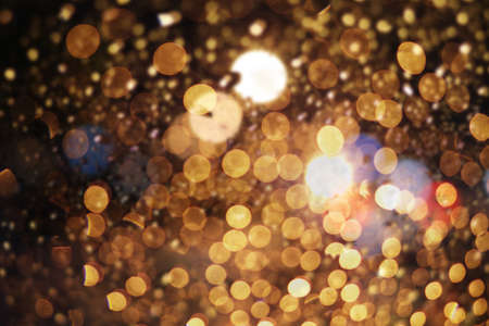 Light bokeh defocused background. Blurred photo of Christmas lights. golden light effects. holidays, background and illumination concept
