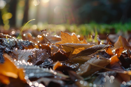 Dry leaves scattered on ground create a textured display of brown hues and natural beauty