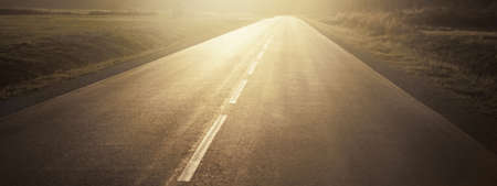 Asphalt road panorama in countryside on sunset in summer.