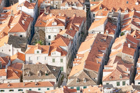 Dubrovnik Old Town, Croatia. Tiled roofs of houses. Church in the city. City View from the wall.