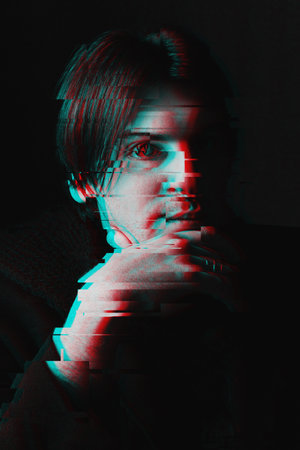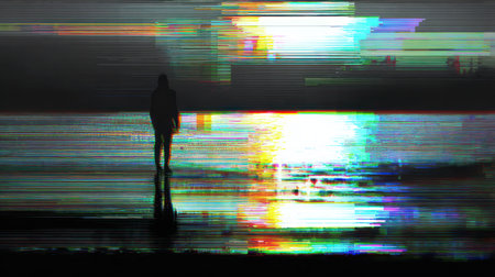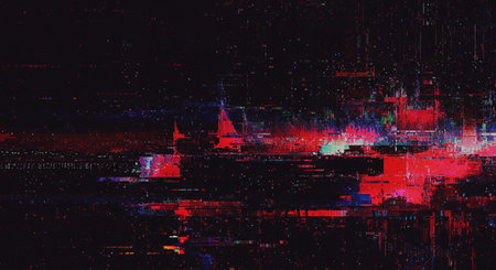 Glitch effect creating digital distortion with chaotic noise in a dark setting