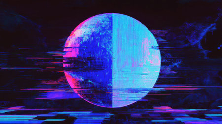 A vibrant sphere rendered in glitch art style, showcasing neon colors and dynamic patterns. This digital artwork reflects modern aesthetics and creative exploration.