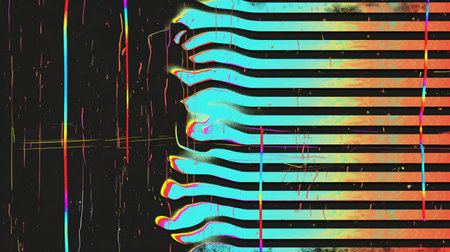 Digital glitch effect with vivid scan lines and distorted colors reminiscent of old TV screens