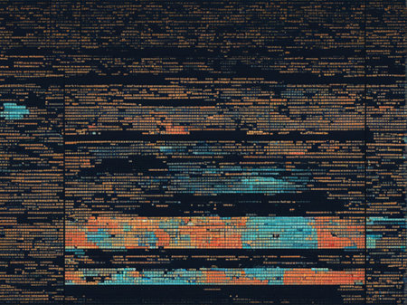 Colorful, angled close-up shows digital lines of text in a blurred, artistic rendering