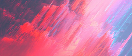 Abstract digital art featuring horizontal streaks of red, cyan, white, and black background