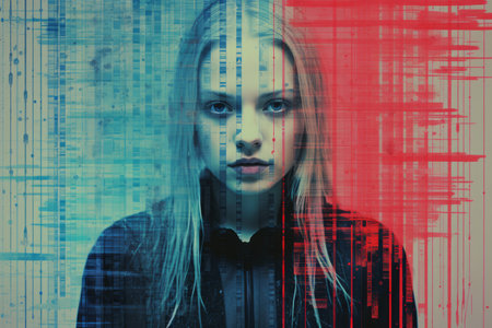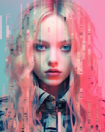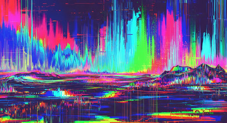Digital glitch effect creates vibrant color shifts and distortion in modern art